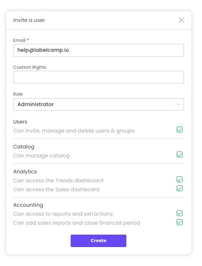 Only users with the administrator role can invite new users to join Labelcamp.